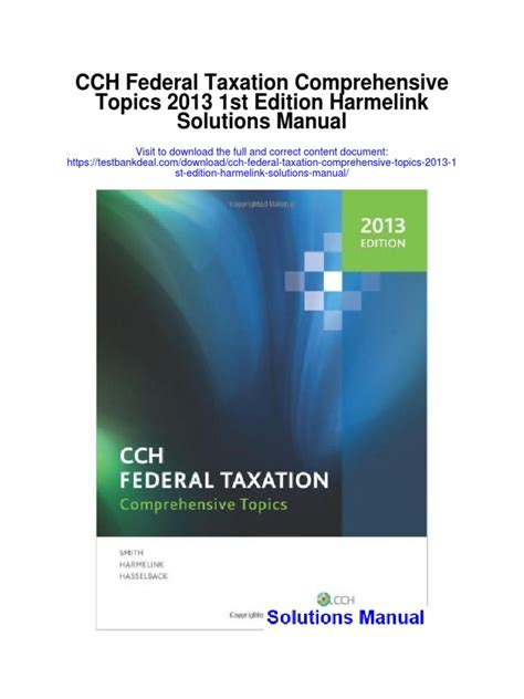 Download CCH FEDERAL TAXATION COMPREHENSIVE TOPICS SOLUTIONS MANUAL iBooks Open Library